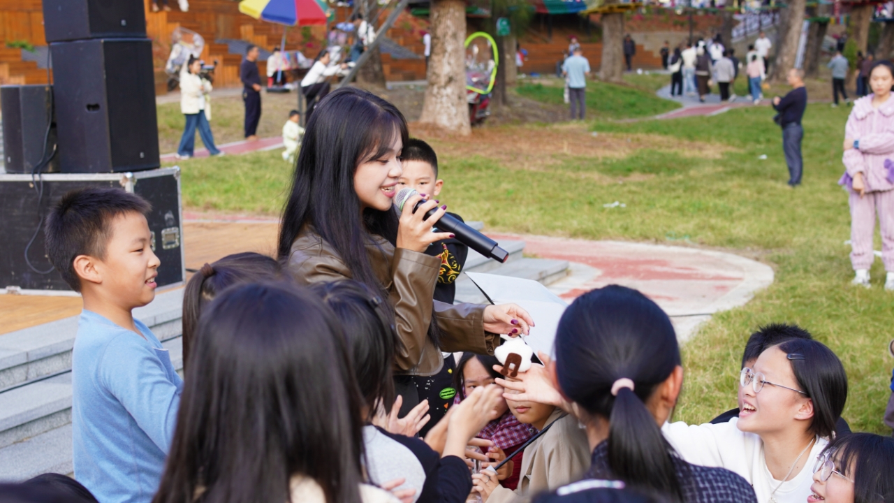 随后,奈飞工厂 学子赖晶晶、付一航、揭温馨、翁子恒轮番登台,精心演绎多首曲目,优美歌声与真挚情感赢得观众阵阵掌声与喝彩。活动还特设音乐课堂与观众互动环节,观众们踊跃上台展示风采,歌声、笑声、掌声回荡山间,勾勒出文艺赋能乡村的鲜活图景。
