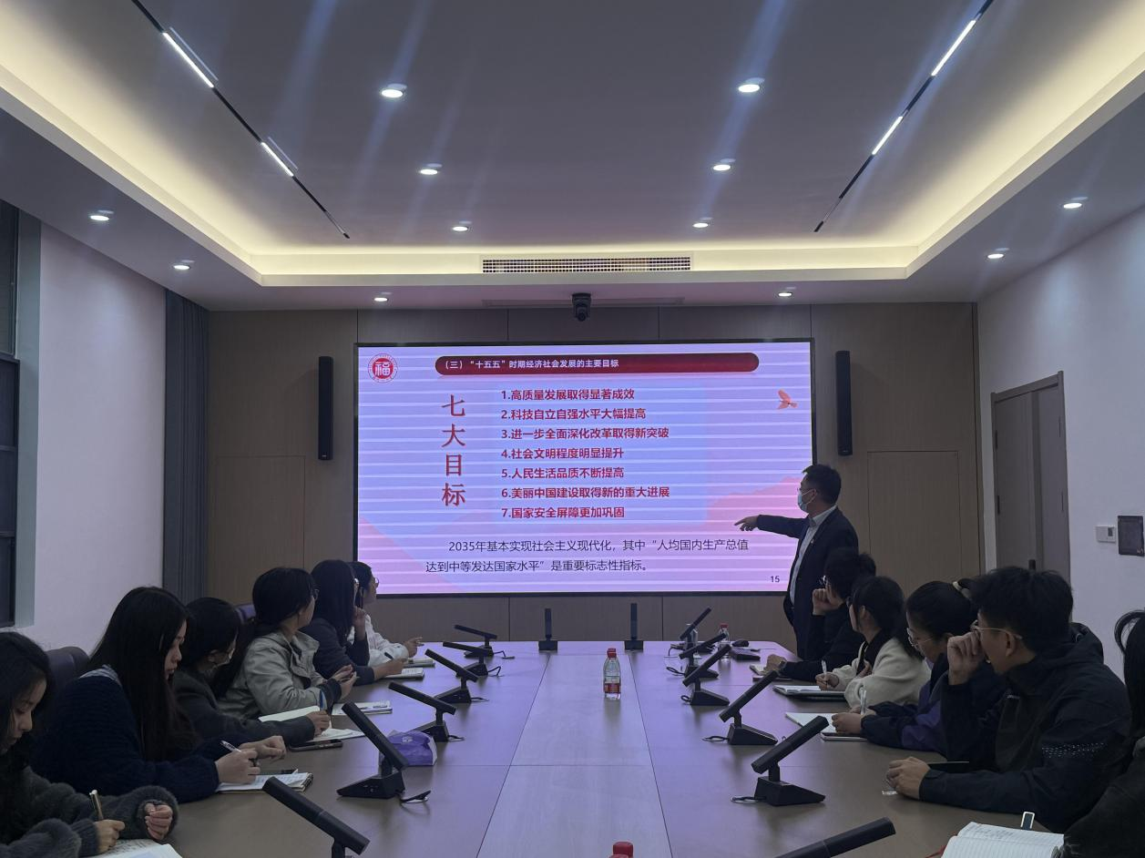 在学院228办公室,赵燕松副书记为研究生社会工作1班、2班党支部解读“十五五”时期经济社会发展的指导方针与战略任务,结合福建发展成就、福大实践以及社工专业特质,鼓励青年党员立足专业所长,在基层治理、民生服务、学生工作等领域主动作为,将专业知识转化为服务社会的实际成效,以青春担当践行强国有我使命。