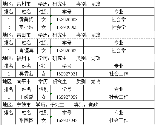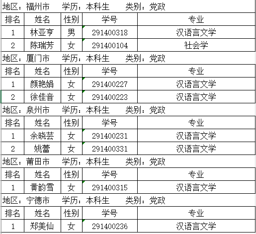 选调生排序名单