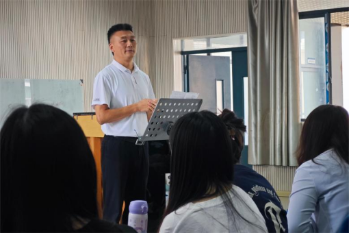 党委书记王群为音乐系学生上纪念五四运动105周年主题微党课。