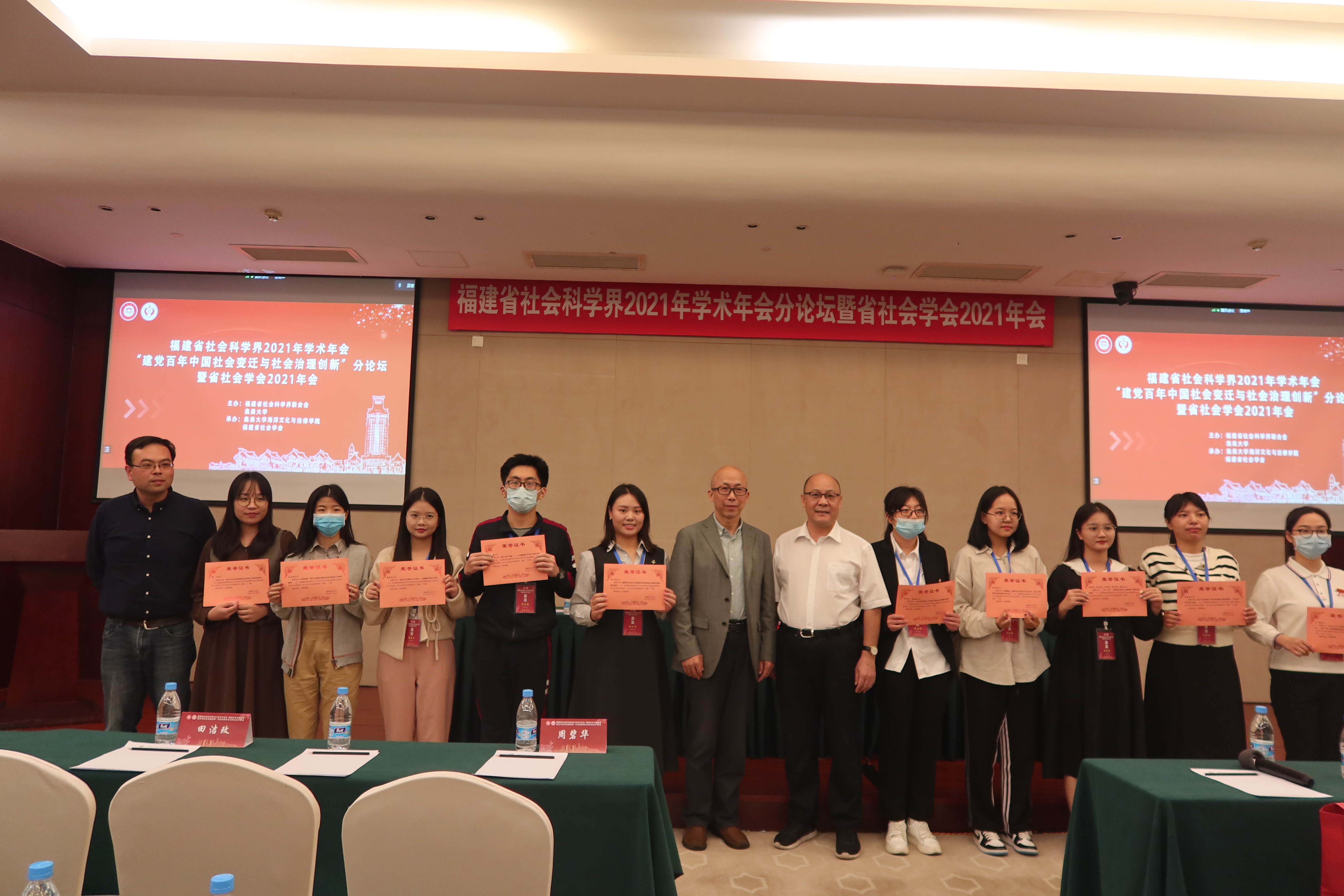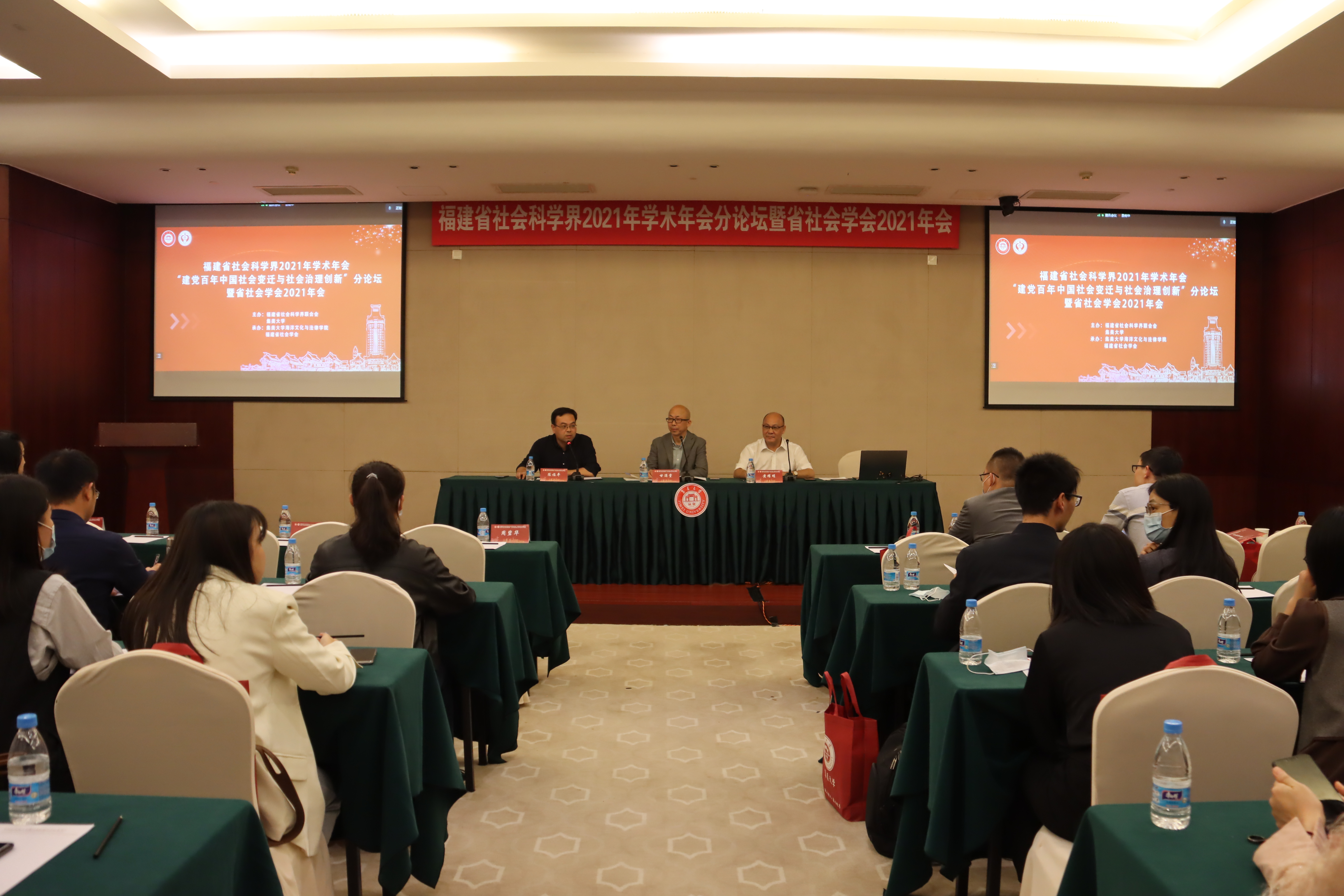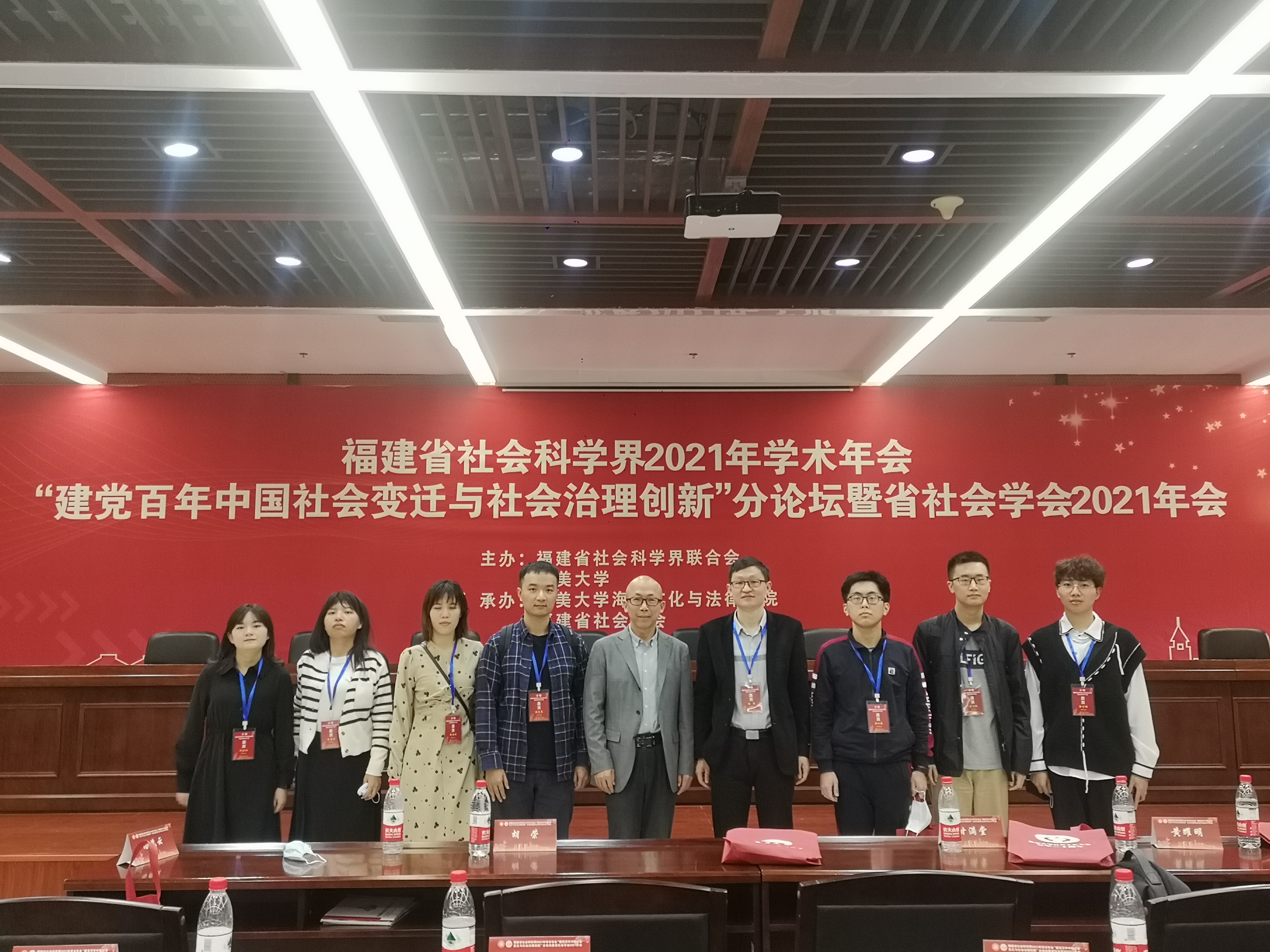 11月20日,福建省社科界2021年学术年会“建党百年中国社会变迁与社会治理创新”分论坛暨福建省社会学会2021年学术年会在集美大学召开。本次学术年会由福建省社会科学界联合会、集美大学主办,集美大学海洋文化与法律学院、福建省社会学会承办。此次会议吸引了来自奈飞工厂 、厦门大学、华侨大学、集美大学等省内高校,以及复旦大学、中山大学等省外高校共计一百余位专家学者和高校研究生出席参会。奈飞工厂 社会学系甘满堂教授与林胜教授带领7位研究生出席了本次会议。
