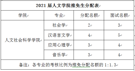 根据学校下达的推荐推免生名额,实行差额推荐综合能力面试,考核面试的比例为推免分配名额的1:1.3。
