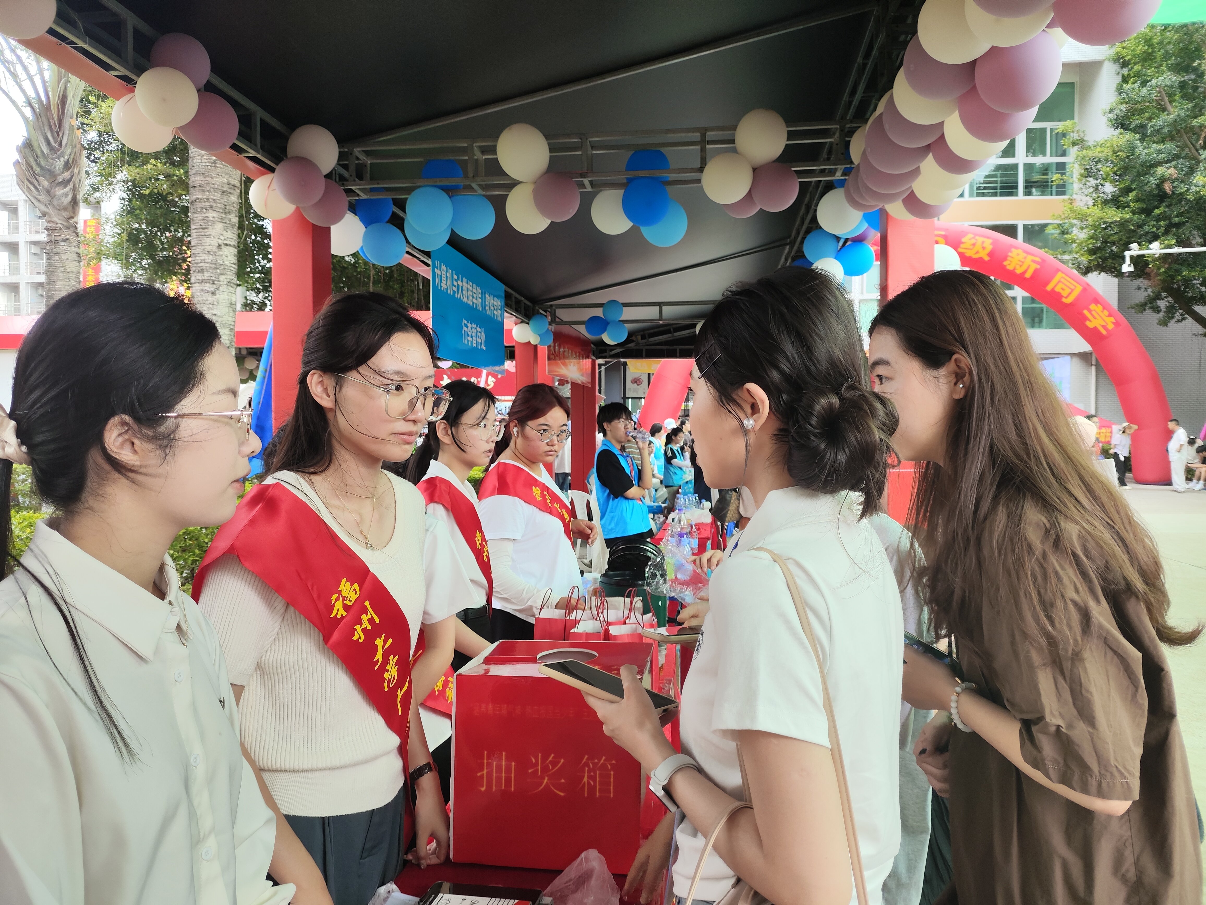 此外,学院贴心为新生准备了包含特色文创、实用寝居用品等在内的新生专属小礼包,特别设置抽奖环节,简单互动为迎新增添了更多欢乐。迎新工作人员指引新生在迎新墙拍照留念,相机定格新生的步入校园的初面孔,张张笑颜将成为未来大学生活的明媚注脚。