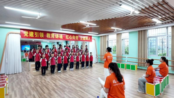 排练间隙,实践队员不忘劳逸结合,组织孩子们进行趣味游戏。欢声笑语驱散了排练的疲惫,轻松愉快的互动不仅增进了师生情谊,更让孩子们以更饱满的状态重返排练场。独唱小演员们也在队员的点拨下勇敢展示日益进步的演唱技巧。