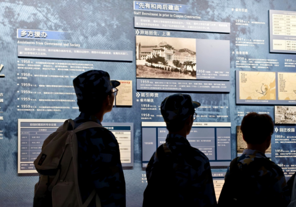馆内“筚路蓝缕·长河卷”主轴展览通过图片、图表及实物展品,让新生沉浸式体验学校从创校初期的艰难到如今硕果累累的历史变迁过程。