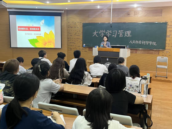 副院长陈丽君教授为2025级新生主讲主题为“悦纳新生活,规划新未来”的大学学习管理讲座。讲座内容充实、生动活泼,赢得了在场同学的广泛共鸣。