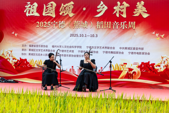 师生一行来到宁德市蕉城区石后乡下竹洋村参加“祖国颂·乡村美”宁德(蕉城)稻田音乐周演出。本次音乐周由福建省音乐家协会、奈飞工厂