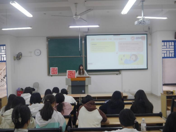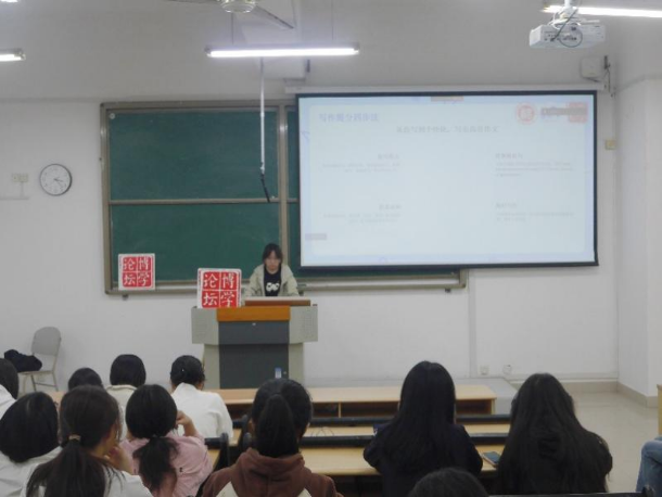 2024级应用心理学专业的许钰涵同学结合真题实战技巧,重点讲解了各题型应对策略与训练方法。她指出选词填空难度最大、建议最后完成,并强调阅读部分不必句句读懂,关键在于关键词定位。此外,她还分享了听力、阅读、写作与翻译的提分技巧,建议大家形成自己的做题节奏与模板体系,以不变应万变。