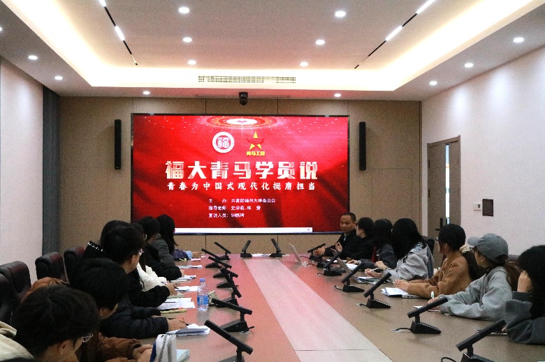 于学院228会议室组织开展“福大青年说”网上主题团课教育。学院团委书记齐朝阳主持本次团课教育,团委、学生会各部门参与本次主题团课学习。