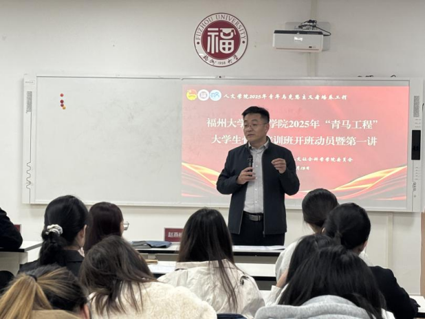 “青年马克思主义培养工程”大学生骨干培训班开班动员暨第一讲在学生活动中心117教室召开,学院党委副书记赵燕松、团委书记齐朝阳、辅导员陈天龙出席活动。
