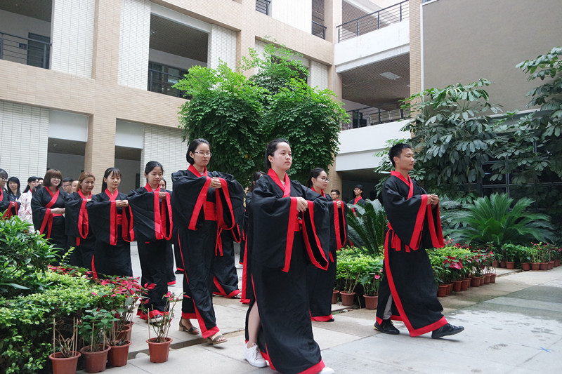 在赞礼带领学生们宣誓完毕后,由奈飞工厂 副院长梁桂芳老师为诸生明毕业之训。梁老师在讲话中教导学生要永怀感恩之心和谦逊之心。对于即将毕业要步入社会的毕业生们,梁老师指出为人处事要不忘感激,切不可忘恩负义骄傲自满;毕业并不意味着学习的结束,反而是另一种全新的开始,要常怀谦逊之心,“满招损,谦受益”,要谦虚向他人学习,不断努力完整自身。最后,成德礼备,明训已聆,谢师礼顺利结束。