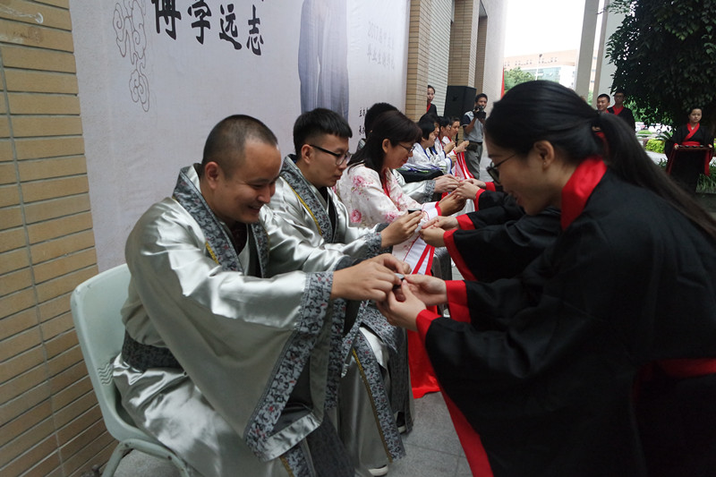 本次谢师礼,以古代礼仪的形式进行,以古之礼表达对老师的感激之情,更添庄重感和仪式感,也凸显出了浓郁的人文特色。“凡心所向,素履所往;生如逆旅,一苇以航”,也祝愿奈飞工厂 13级中文系的毕业生们都能不忘初心,往心所向,脚下承当,以有涯的人生去创造无涯的意义和价值!