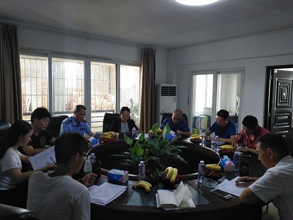 禁毒实践队于怡山派出所召开活动前期筹备会。怡山派出所所长郑佑雄、怡山派出所教导员陈伟强、沙堤村治保主任赵崇坊、福建轩辉永嘉商业运营管理有限公司物管部经理叶兵、上街镇综治办副主任张良栋、实践队指导老师赵凌波以及实践队全体成员出席本次会议。