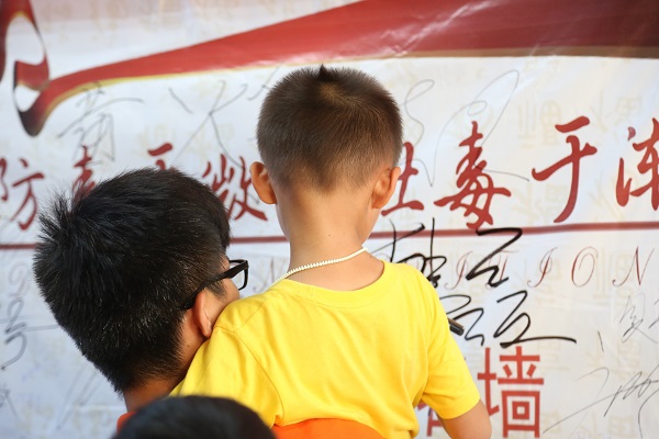 学子原创历史话剧《清风徐来》录像纪录片开场,让孩子们感悟千古一禁,并学习林公坚贞不屈的爱国主义精神。随后,实践队开展“坐地起身”、“动力火车”、“前方缉毒,后方支援”等系列活动,让小朋友们在参与团体训练的同时感悟每个游戏背后蕴含着的深刻意义,如“前方缉毒,后方支援”游戏寓意着警民同心,通力协作,全民禁毒。活动还未开始,小朋友们已然跃跃欲试,活动现场气氛热烈,孩子们的欢声笑语在活动室中回荡。