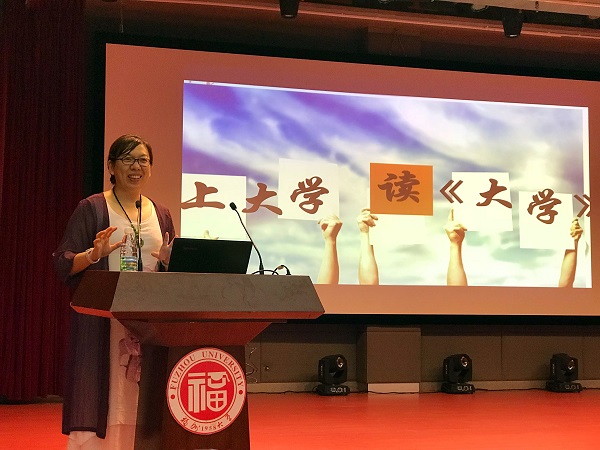 薛美秀老师正带领着17级新生诵读《大学》,举行成人礼。