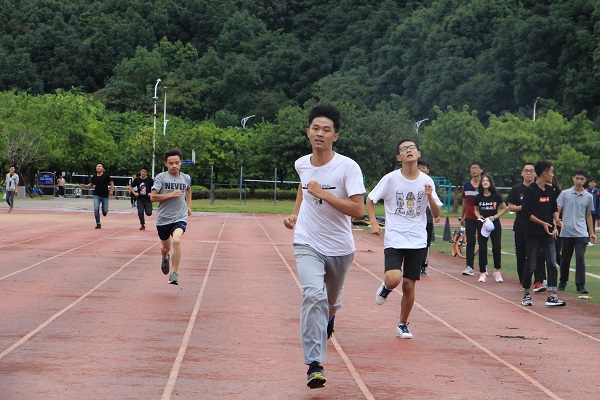 新生运动会在三区风雨操场顺利举办。下午2点,运动员们在跑道上做着热身运动,跃跃欲试。