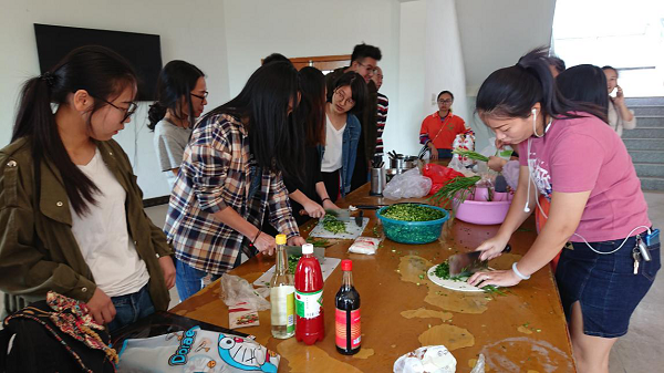 社会学专业的林榕鑫同学则负责为医生们翻译福州话,协助义诊服务更顺畅地进行。与一楼义诊同时进行的,是二楼的包饺子活动。村里有经验的阿姨也积极加入,为同学们提供热心指导与帮助。这一具有浓厚家庭气息的活动拉近了同学们与榕树社工机构的距离。值得一提的是,当老人们坐在桌前吃着香喷喷的饺子时,积极主动的大一同学,更为老人们献上了她们精心准备的歌曲,并送上美好的祝福。期间,一些老人和小孩子也跟着同学一起歌唱——饺子的香味、美妙的歌声和老人的笑脸,让现场充满了温馨的气氛。