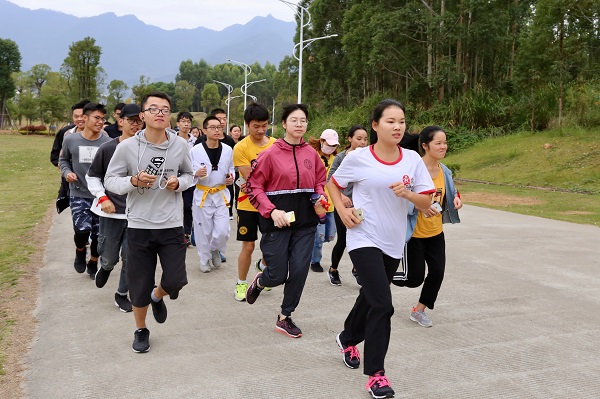 魏淑贞同学领跑,一行人浩浩荡荡绕着校园从南门跑到了三区操场,用脚步和汗水传递着温暖。