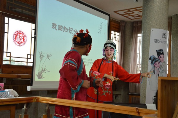 15级汉语言文学二班团支部携手非物质文化遗产协会和16级金融二班团支部,于福友阁举行了一堂精彩纷呈的戏曲知识普及课,由非遗协会会长进行主讲。