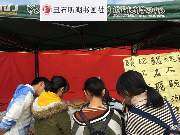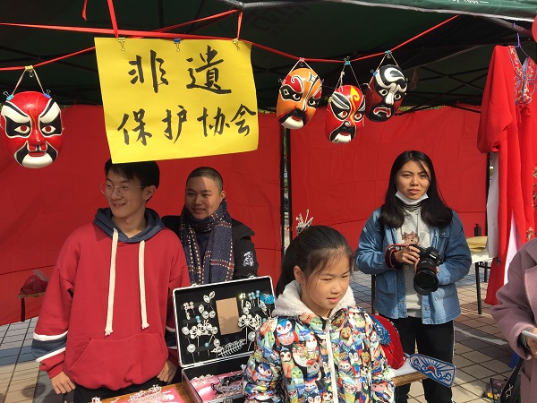 非物质文化遗产保护协会和丑石听潮书画社都参加了本届国际文化节。非遗协会向来往人群展示了戏曲演出时的头饰,面具等,并现场演示了演员的化妆过程,以戏曲妆容展现戏曲魅力。丑石听潮书画社则挥毫泼墨,笔走龙蛇,展现书法魅力。值得一提的是,丑石听潮书画社用小楷字体撰写书签送给观众,一时吸引了许多对书法感兴趣的学生围观排队领取书签,中国书法文化得到更广泛的宣传。