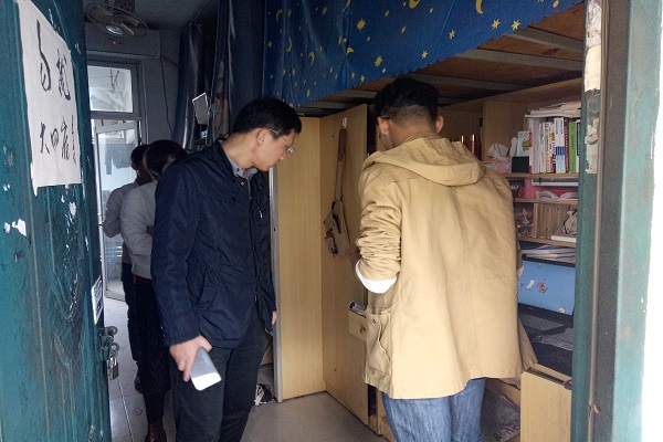 团委叶阁泽书记以及各年级辅导员共同参与本次检查。此次安全排查有利于同学们做好假期离校前的安全工作,排除宿舍安全隐患,树立宿舍安全意识,也有利于为同学们营造更为安全舒适的宿舍环境,打造和谐美丽的人文大家庭。