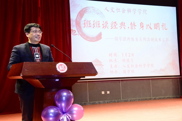 “中华文化,源远流长,国学经典,诵读不衰”。这一年里,人文学子为传承国学文化做出了不懈努力,取得了累累硕果。各专业班级发挥专业优势,结合专业特长,别出心裁,积极开展经典诵读、社会调研、普通话推广、支教解读国学等风格多样的活动,充分展现了人文学子的智慧。值得一提的是,各班在汇报成果后积极进行个性化的国学展示,或是富有感情地诵读国学,或是表演诙谐幽默的情景剧……他们用不同的形式,表达自己对国学的理解。