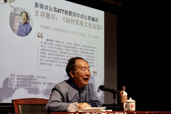 周教授针对当下的热点话题——“如何实现文化自信”,为在场听众做了精彩演讲。周教授提出影响当代文化自信的两大障碍分别是历史虚无主义和盲目迷信西方,并结合中国历史做了详细阐述,通过中美历史、文化的对比,展现了中国厚重的历史文化底蕴。周教授表示中国博大精深、源远流长的文化便是我们自信的基石。讲座期间,同学们认真聆听,积极思考,并在交流提问环节同周教授热烈探讨如何实现文化自信的问题。值得一提的是,周教授在现场为嘉锡讲坛题字——“学习历史、了解文化,比较研究,认识精华。”表达对福大学子传承中华文化,增强文化自信的深切希望。