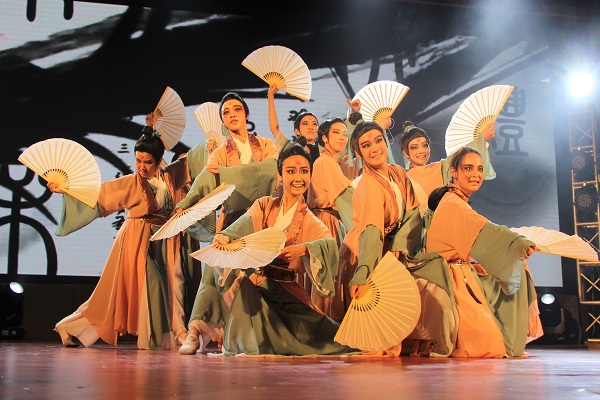 与化学学院的女孩们着一袭长衫女扮男装,娉婷之姿下多了一份男子气概,一展书生文韬武略诉不尽的豪情华茂。《纸扇书生》“巾帼不让须眉”的风采引得观众多次鼓掌叫好,同时打动了在场评委,斩获二等奖的好成绩。