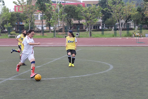 第二届女子足球赛八进四复赛,对阵建筑学院女足,并成功踢入前四强。