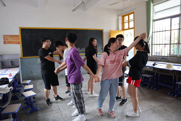 “心辅相助,留梦守情”实践队发现此种现象,为帮助浦城的部分中学生认识自我、调节自我,以更加的积极心态面对学习生活,于7月16日下午2点半为浦城的学生开展了一堂生动的团训课程。