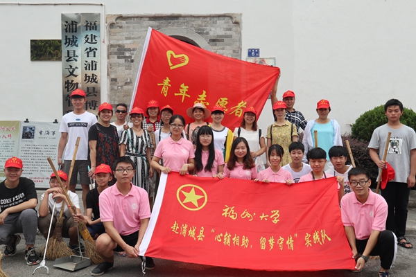 建筑是凝固的艺术。经历风霜雨雪、世事变化,三山会馆穿越时间的长河屹立至今,实践队有幸拂去历史的厚重尘埃一睹其真容。置身于开阔的中庭,可以想见当时戏台上演绎的一段段传奇故事;穿过长长的环楼走廊,上等杉木还彰显着典雅厚重的韵味;环楼之下整洁的厢房是莘莘学子寒窗苦读的最佳例证。值得一提的是,实践队在参观过程中遇到了浦城三中的青年志愿者队伍,双方进行了友好的交流,不同的行程和活动,相同的却是一颗真挚的奉献之心。有了大家的共同助力,浦城的明天一定会更加美好。