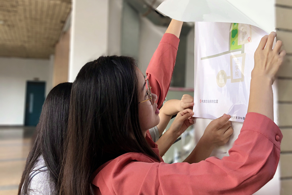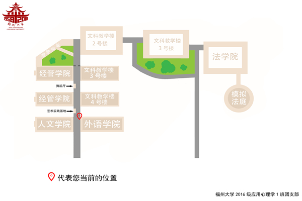 校园占地面积广阔,文科教学楼区域更是曲折复杂,原有的道路指示牌悬挂高处难以看清,初来乍到的新生以及方向感欠佳的同学常在此迷路。基于此种情况,16级心理班的成员借助“工程心理学”中用户设计方面的专业知识,自制了针对上述情况考量的简洁版地图。设计过程中图纸前后共经过3次调整改良,汲取了老师与其他同学的建议,还征集同学进行了使用性测试。小地图正式投入使用后,取得了良好的效果。有同学对设计的作品做出评价:“连我这种不会看地图的人,都能很轻松地看懂,感觉方便了很多。”