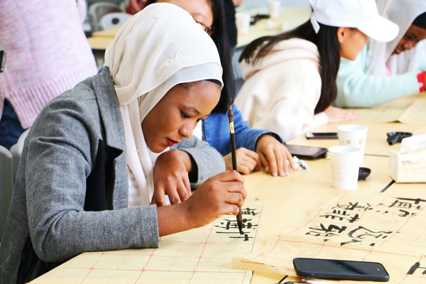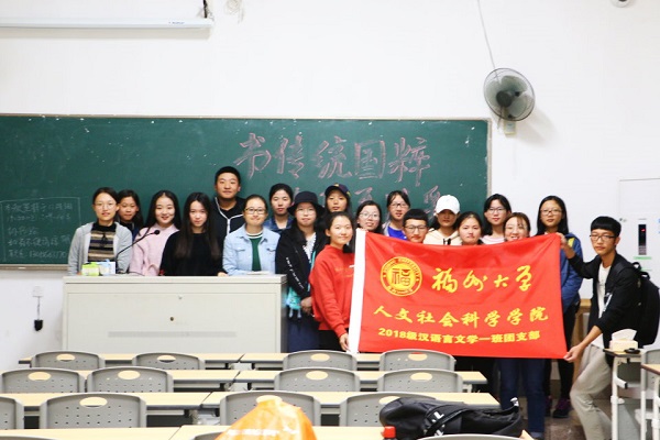 18级汉语言文学一班团支部举办了主题为“书传统国粹,绘华夏风采”的团立项活动,并邀请留学生体验中国书法和国画。