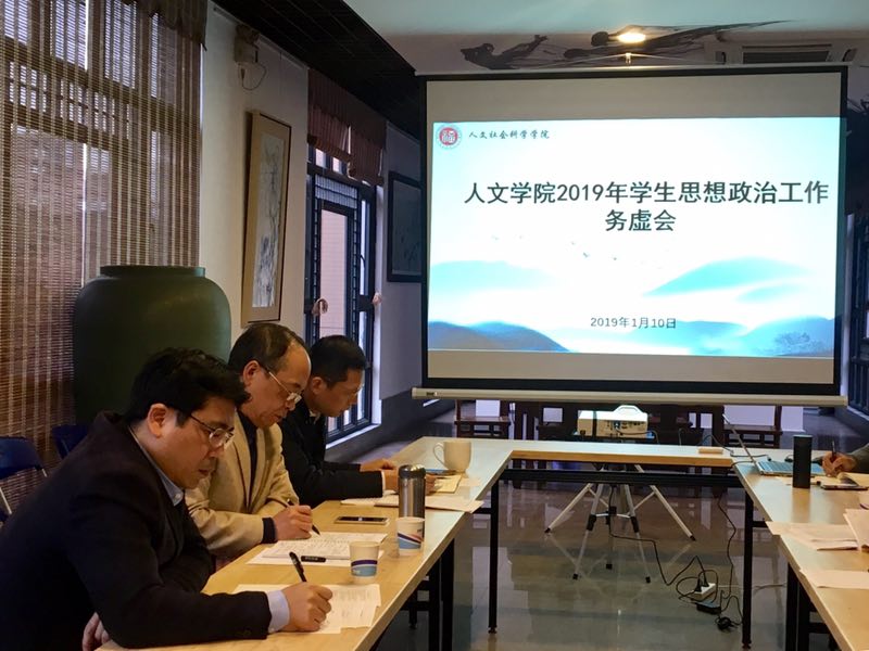于院办传统文化馆召开2019年学生思想政治工作务虚会,校学生工作部(处)徐宏志副处长、学院党委林秋生书记、院党委郑志刚副书记出席此次会议并发表相关讲话。学院全体辅导员和主要学生干部参加了会议。