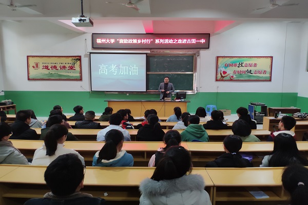 结合资助育人“三行”教育活动,利用寒假学生返乡这一契机,于1月21日到古田一中对高三学生进行了高中阶段学生资助政策的宣传及解读活动。