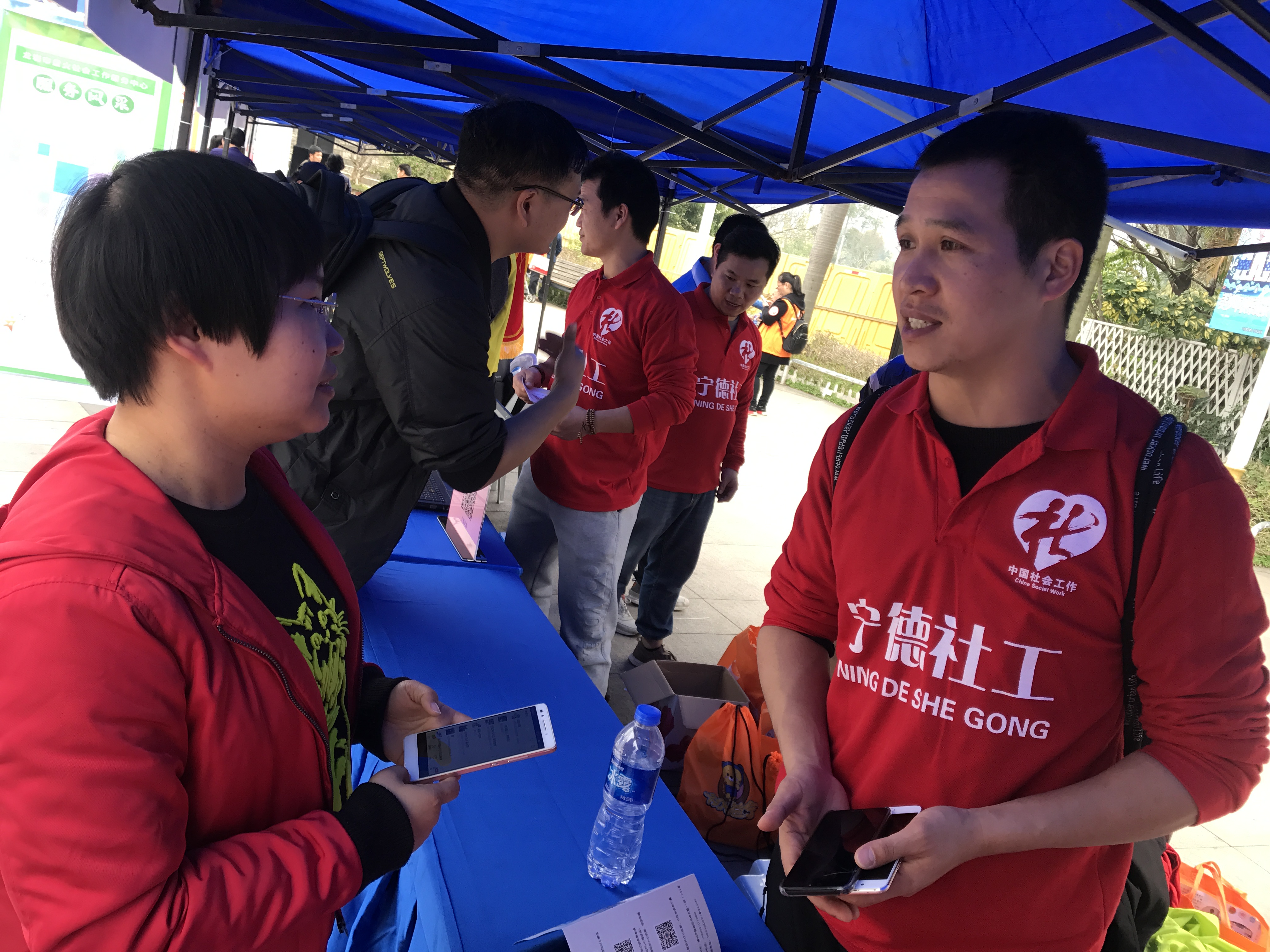 学子和榕树社工主动为前来咨询的单位、社工同行和民众介绍福大社会工作专业教育的情况以及榕树社工中心及其承接的项目。大家交流热烈,多家社工机构负责人前来与福大社会学系讲师王圣莉博士交流,希望日后有合作的机会。