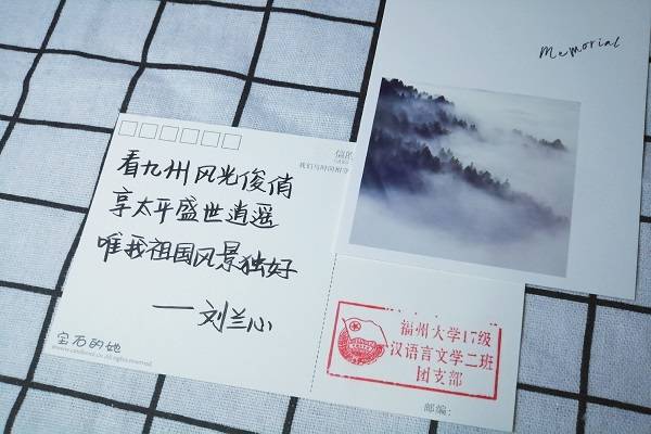 通过10天的线上征稿,2017级汉语言文学2班团支部收到来自三个学院的多份投稿,并将征集到的三行情书书写到明信片上送至投稿者手中。值得一提的是,2017级汉语言文学2班团支部还开通电台,将征集到的三行情书朗读后投至班级荔枝FM电台,将文字转化成声音,让更多人听到福大学子对祖国的美好祝愿。
