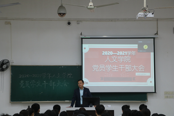 团委书记齐朝阳主持,党委副书记郑志刚、辅导员房菁出席会议,各年段学生党员和主要学生干部参会。