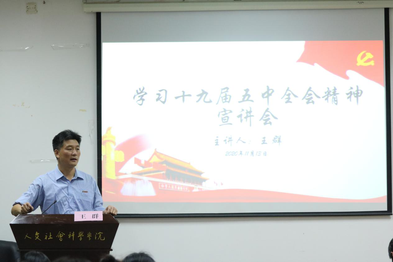 本次会议内容分为学习党的十九届五中全会精神和学生干部工作要求两个方面。在传达党的十九届五中全会精神方面,王群书记为同学们细致讲解了我国在过去发展过程中遇到的波折、新发展阶段面临的机遇和挑战以及当下发展目标和总体要求,激励学生干部们团结奋斗。在学生干部的工作方面,王群书记希望各位学生干部能认识到学生工作的本质是管理和服务学生,并发挥思维整合现有资源,发挥好部门与学生之间的桥梁纽带作用,共同为学院的发展贡献力量。