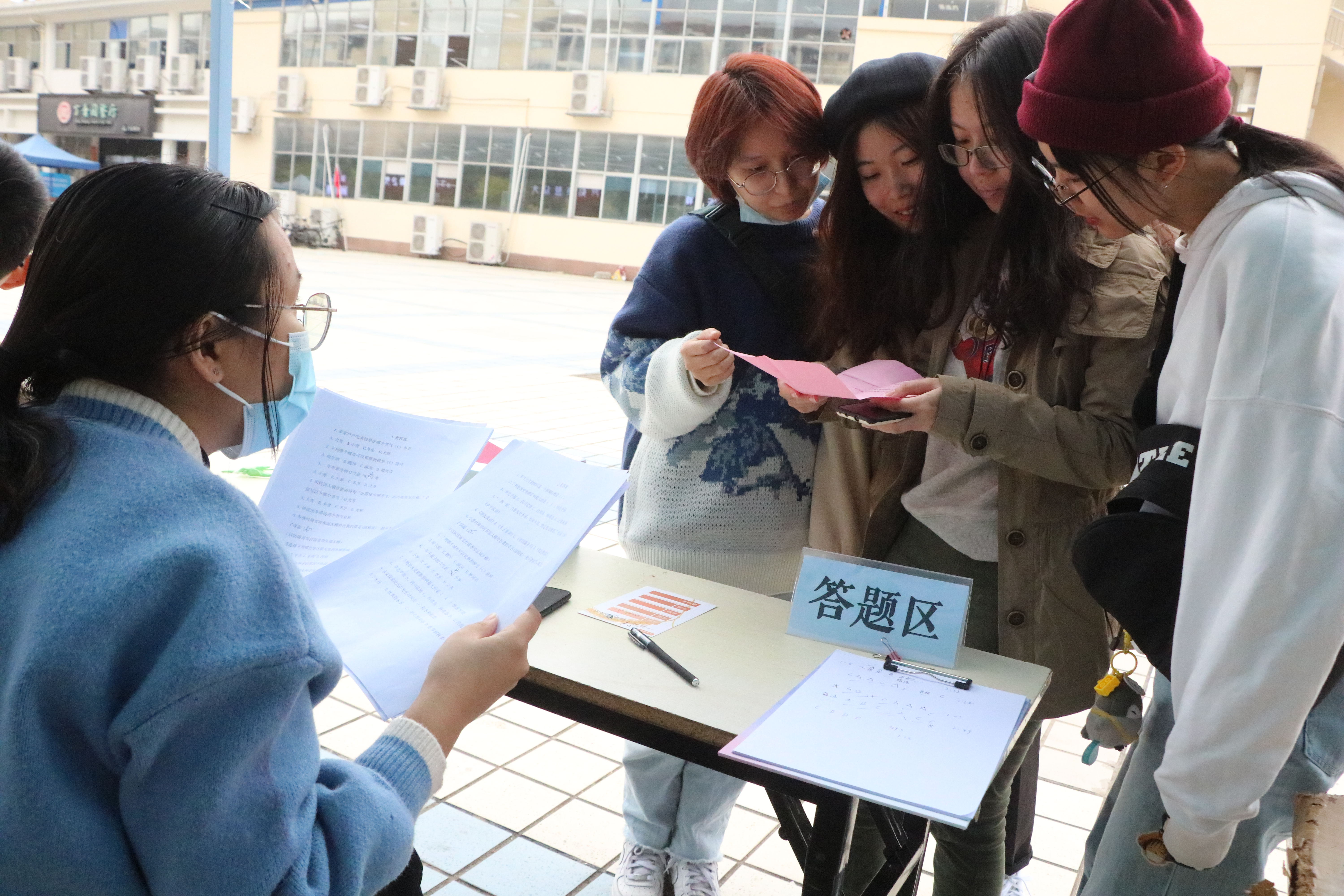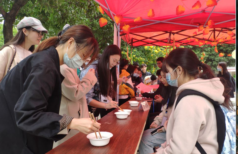 在活动开始之前,就有不少同学热情高涨,积极参与,报名通道开启后,120个小组名额很快满员。现场活动主要分为春耕、夏耘、秋收、冬藏四个主题,由答题和游戏两个部分组成。答题区的各打卡点题目不仅与主题息息相关,还结合了中国传统农学、气象学、地理学、二十四节气等优秀传统文化。答题区现场比拼异常激烈,各小组内部积极讨论,成员之间互相交流自己的看法与观点,不断碰撞出思想的火花。有同学表示:“通过此次活动,看到了自身在传统文化、古代诗词以及一些常见的文化常识方面的不足,也对爱粮有了更加深刻的体会。”