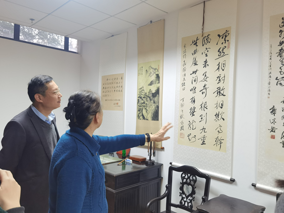 卢葛覃老师首先带领剧本创作小组参观了卢嘉锡先生纪念馆。在卢老先生的书房里悬挂着他的书法作品,着眼望去字迹端正、刚劲有力,身姿展而不夸,足见其书法功底之深。卢葛覃老师提到卢老先生不仅能着一手行云流水的笔墨,还对诗词颇有造诣,除此之外也尤为擅长对联创作。