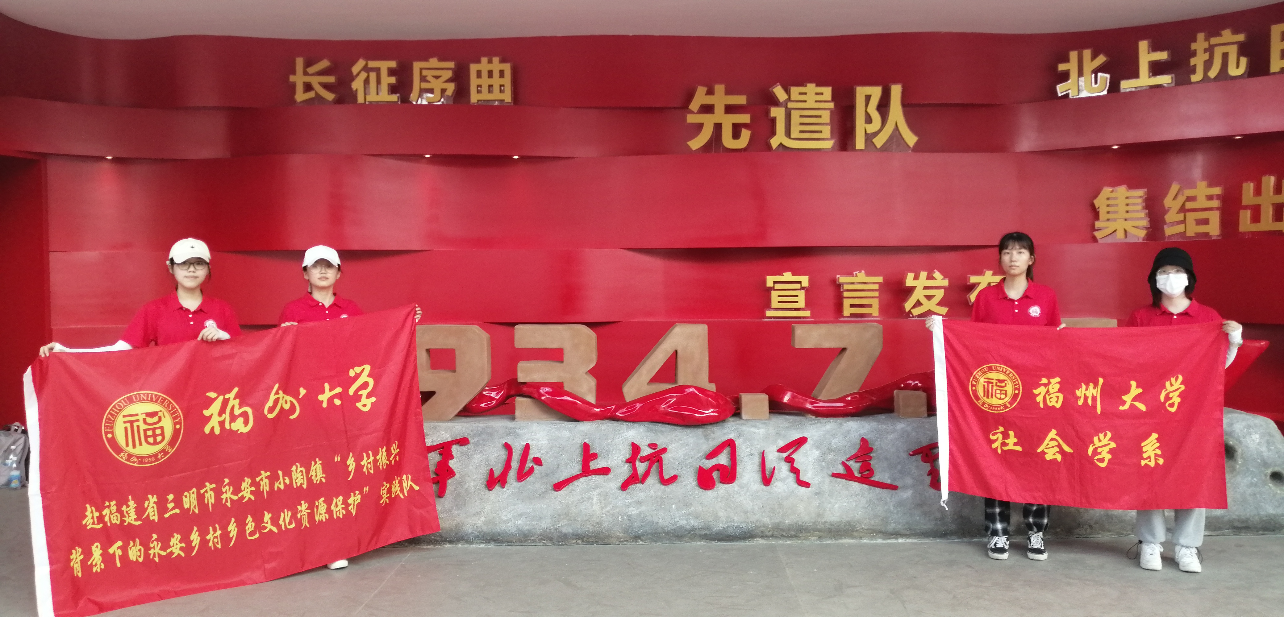 2021年7月13日至17日,实践队走访了多个红色文化调研地和传统文化遗址,深入感受红色历史的渊远铭深。在永安市小陶镇寨中村,队员们走过“红烛清香祭国魂”的红军墓前,驻足浸透朱子文化的朱文公祠和继述堂、永盛楼;在红军北上抗日先遣部队陈列馆,穿透岁月的老照片和老故事无一不诠释时之风云,时之民心;在大陶口村的各个红色遗址,墙面斑驳的红军标语叙述着峥嵘岁月、革命热忱……