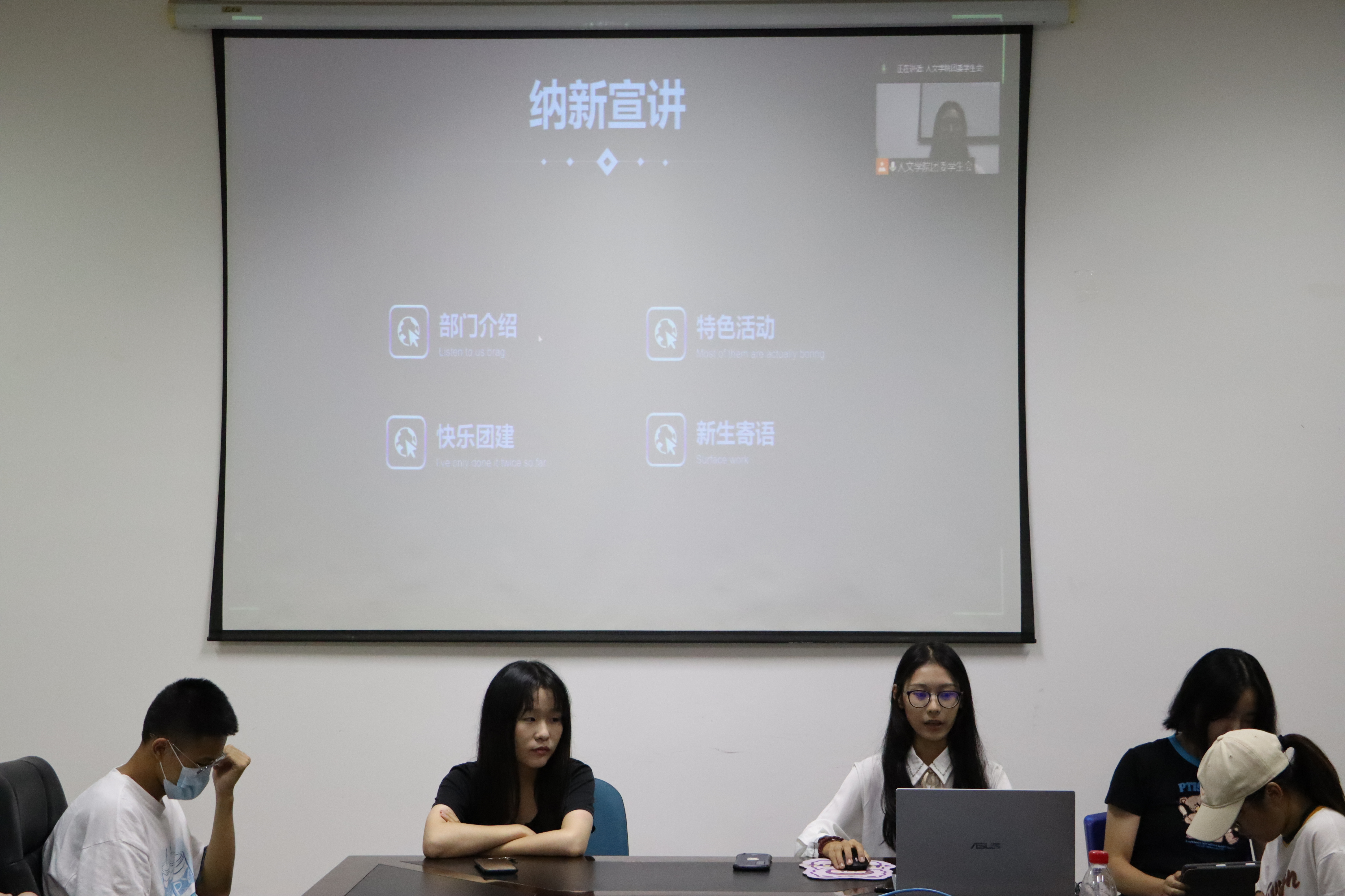 本次宣讲活动共有18个部门参与,每位负责人都充分地展示了自己的部门特色,用简练的语言向新生们介绍了自己的部门。形式多样的PPT、精彩的演讲、有趣的剪辑……多种形式向新生们展现了每个部门的特色。本次宣传形式虽与往年不同,但负责人们一片热情的“纳才”之心却是相同的。