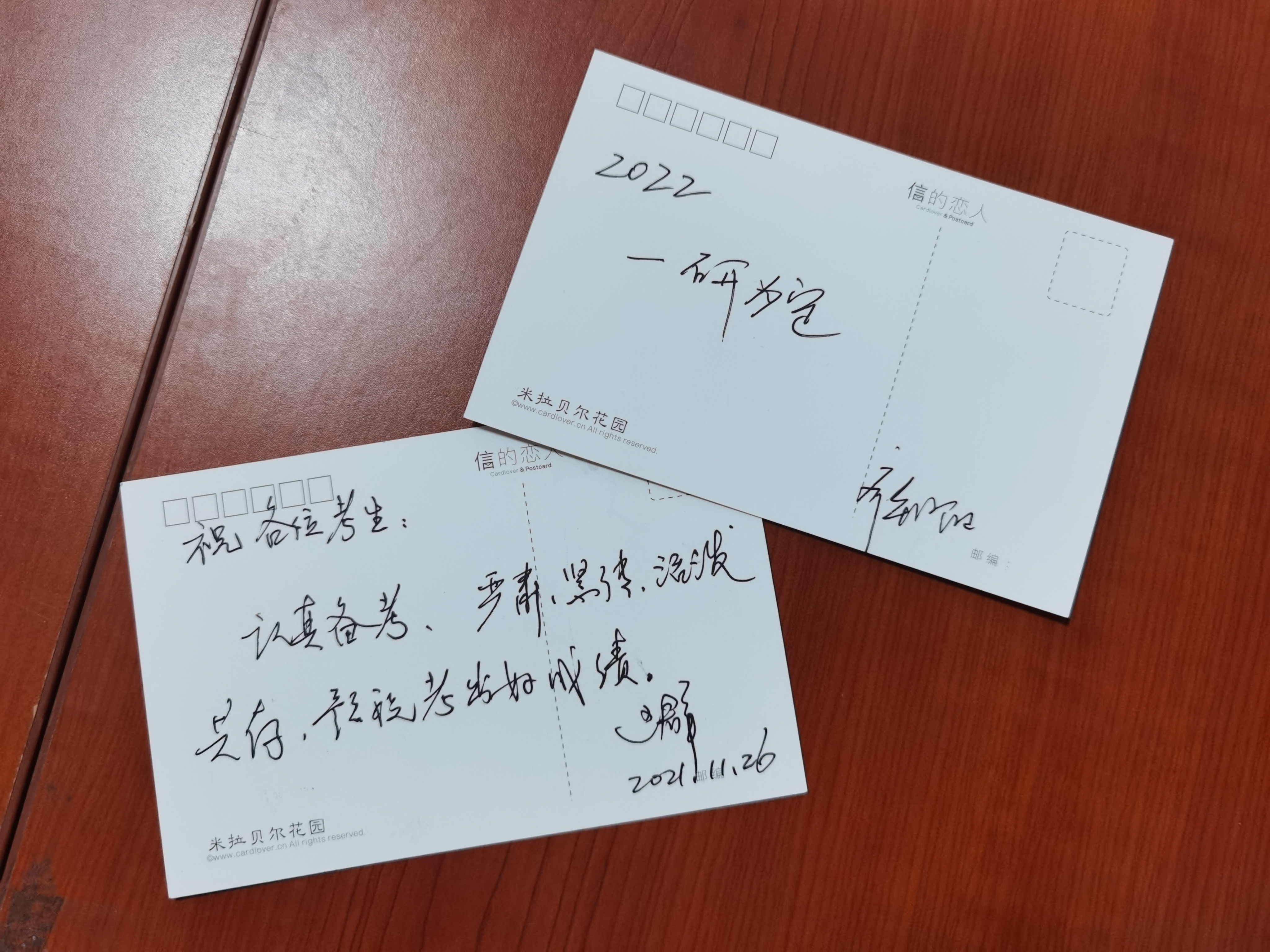 随后,王群书记、齐朝阳书记与房菁老师为考研学子们写下祝福明信片,预祝大家考出好成绩。