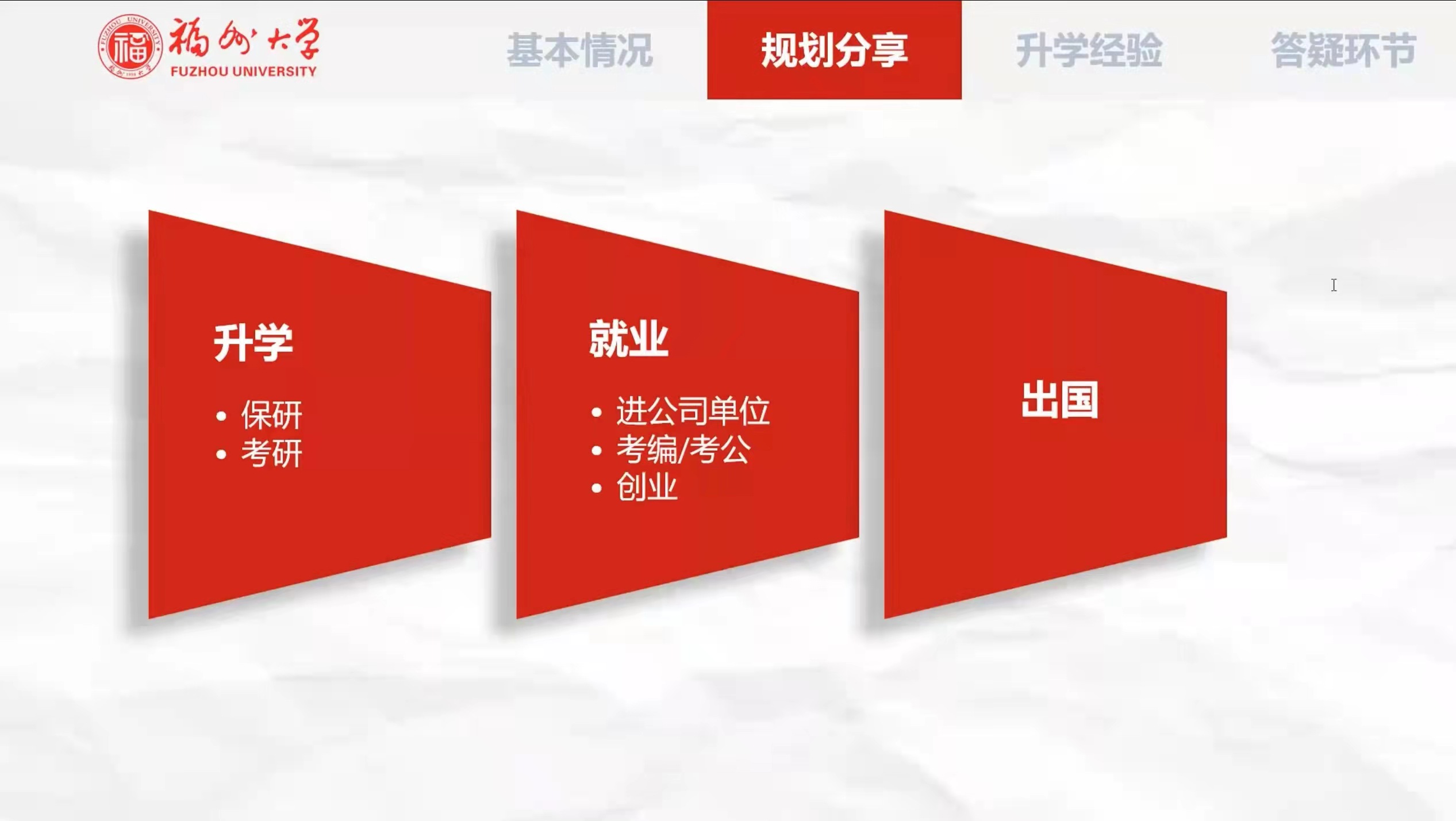 创新创业部举办的职业规划分享大会通过线上方式开展,活动邀请了18级心理学张艺瑶、18级社会学黄静怡、18级汉语言文学向彦桦同大家分享职业规划经验。