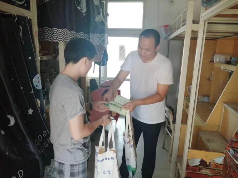 辅导员齐朝阳老师代表学院慰问暑期留校考研及实习生,为同学们加油鼓劲并送上精心准备的“暑期留校防暑大礼包”。