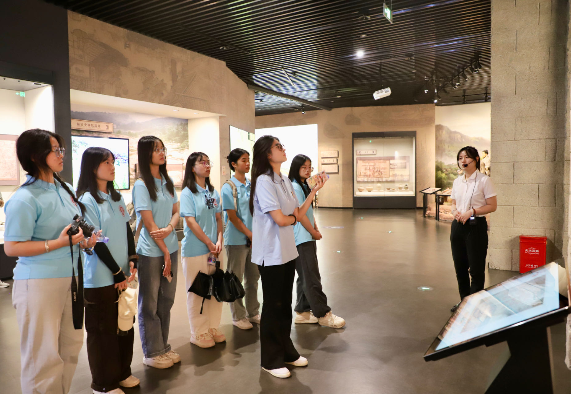在福清古代史陈列区,通过文献、实物与现代技术相结合的展示,实践队深入了解了福清市各个历史阶段的发展情况,从远古到西汉,再到唐、宋、明、清,时间跨度广泛。在博物馆讲解员的详细介绍下,队员们对当地农业、手工业、文化、海防、水利等各方面的建设情况形成了更加完善的认识,直观地感受到了先民们的勤劳与智慧,他们自强不息、百折不挠的开拓精神鼓舞着每一个队员。