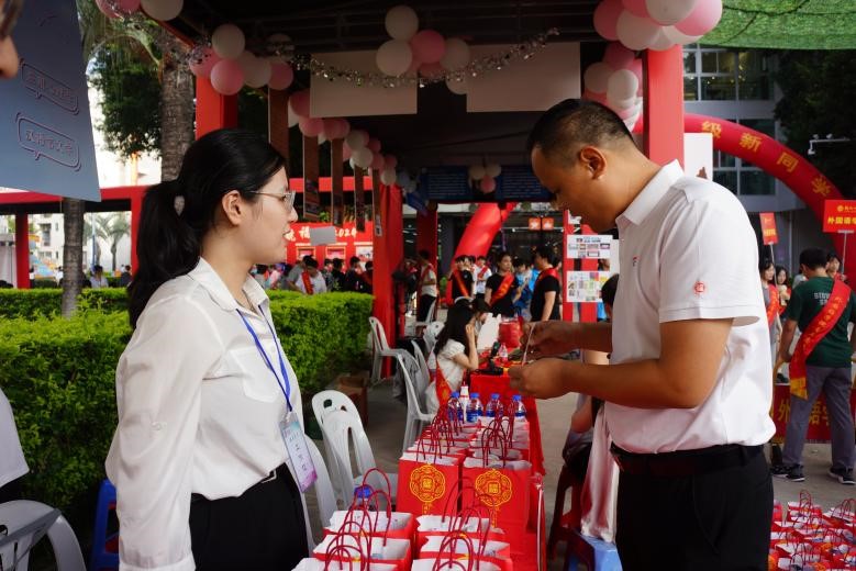 发挥学院风采和社团特色,设计既有人文底蕴又富含趣味性的活动。雅居论道茶社为新生与家长递上清茶,驱散暑热;汉服社身着汉服,展现特色文化之美;音乐学系学生现场演奏,一弦一音传递温情与祝福。学院还为新生准备了包含特色文创、宿舍用品等在内的专属小礼包。新生在迎新点拍照留念,记录初入校园的珍贵瞬间。