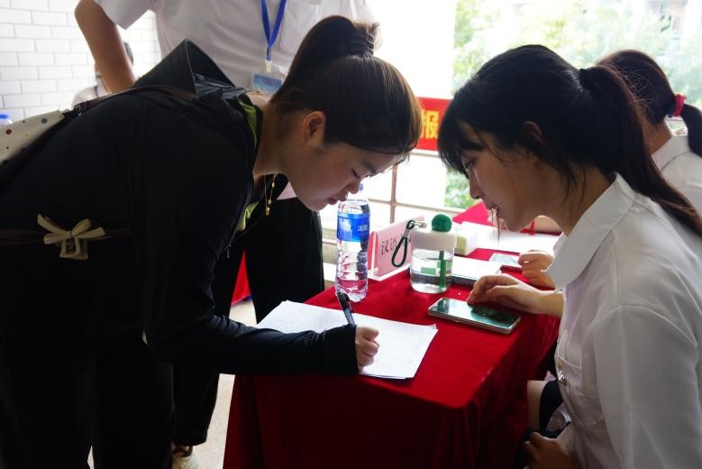 学院高年级同学作为志愿者,协助新生办理入学手续,接待和引导新生熟悉校园环境,帮助新生搬运行李,各司其职,以昂扬姿态发挥青春的光和热。许多迎新志愿者当日行走万步以上。