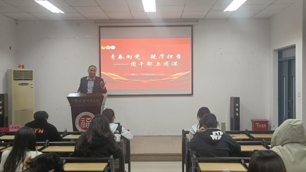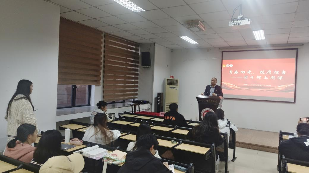 楼202室顺利举办。学院团委书记齐朝阳老师作“青春向党,挺膺担当”主题讲授。